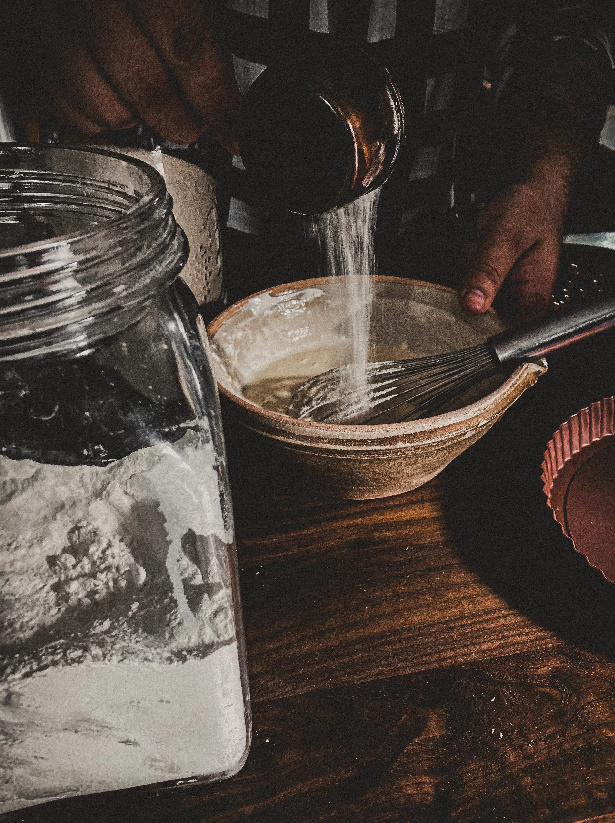 This tart base is very simple and goes against everything we’re taught when making pastry. No floured counters, no rolling pins, no chilled butter or ice cold water necessary. Spoiler Alert: The custard is just as simple. Rather than the traditional method of slowly cooking heavy cream, separated egg yolks, sugar and starch on the stove, I simply substitute a high quality sour cream which helps blend together a silky smooth, rich custard texture.