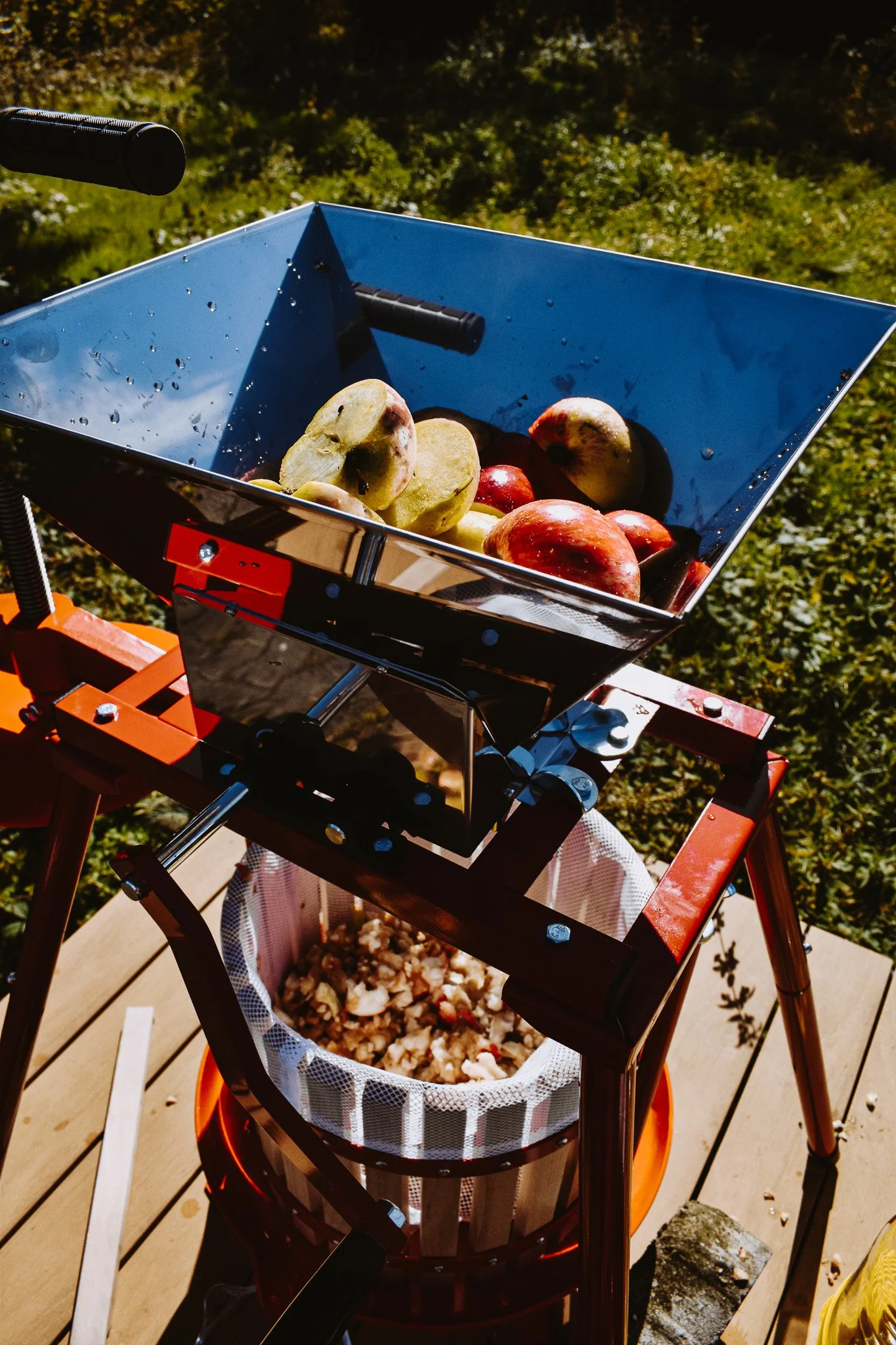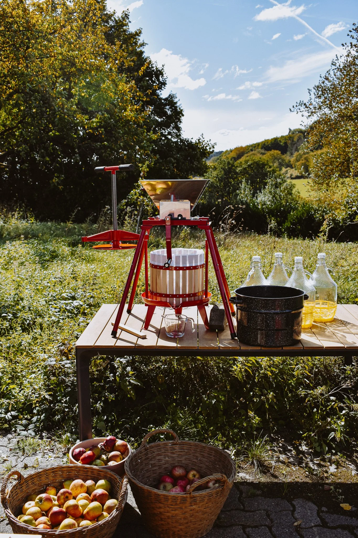 It started with baskets and baskets (and baskets) of apples, collected over the course of weeks and months. All local and naturally organic, and somewhat wonky in shape but perfect for pressing. We set up the press out in the courtyard on one of those golden afternoons that feels stolen from summer.