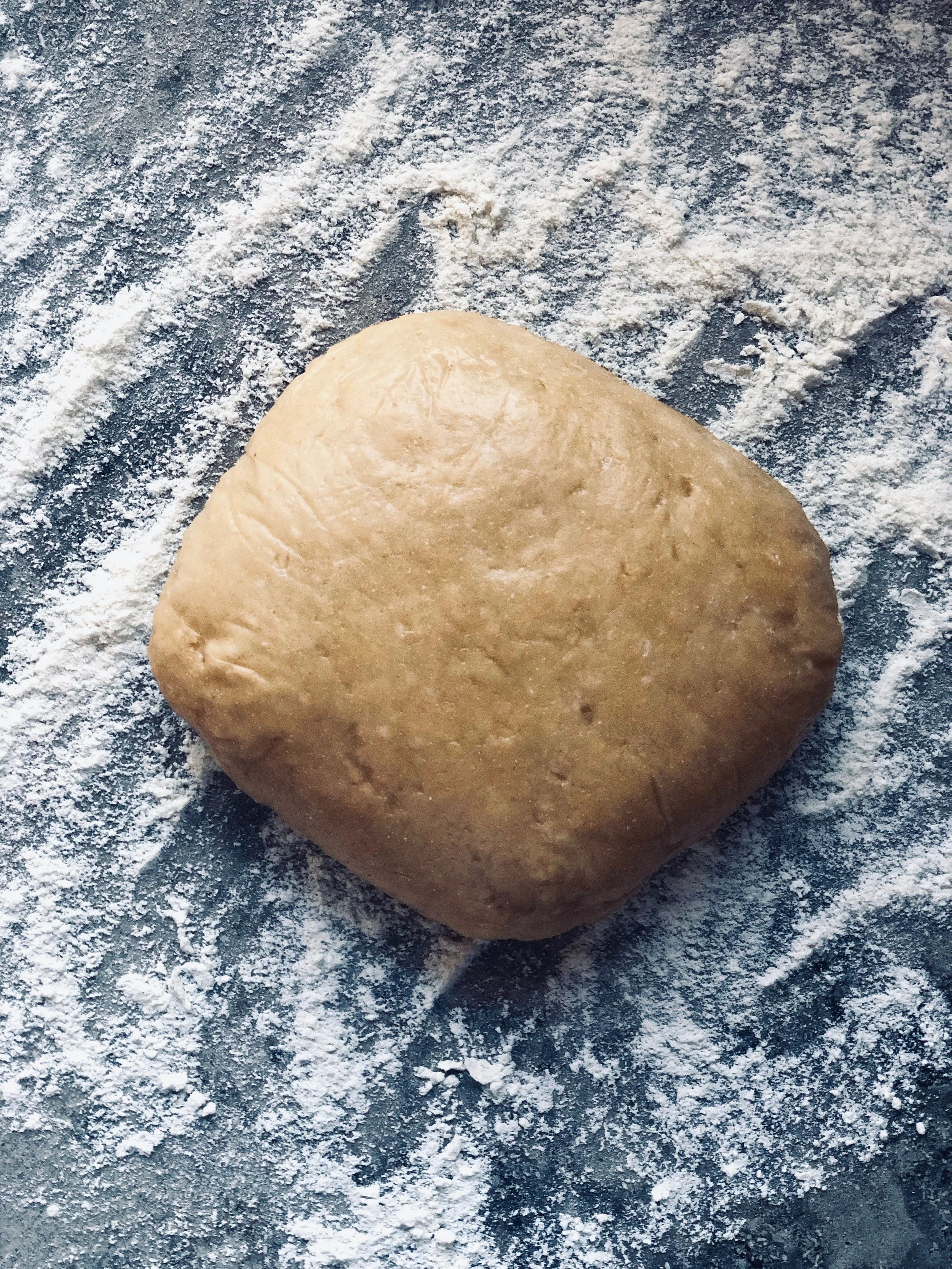 Begin to roll one quarter piece of dough until desired thinness. I usually use two bbq skewers as guides under my rolling pin. Repeat this step for remaining dough.